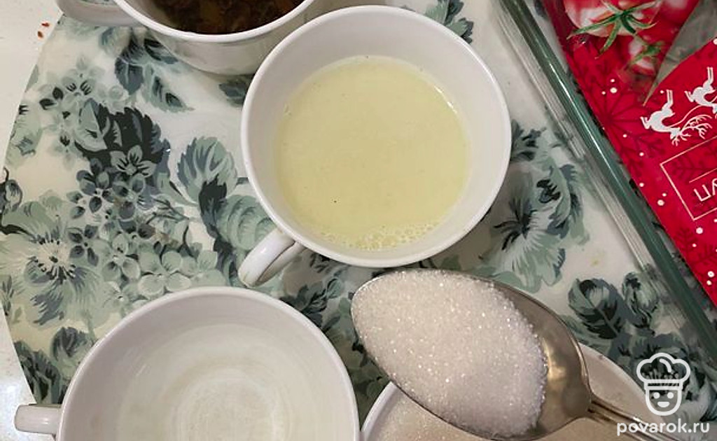 В отдельные чаши насыпать манку и изюм, залить несколькими ложками тёплой кипячёной воды.