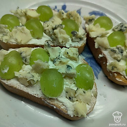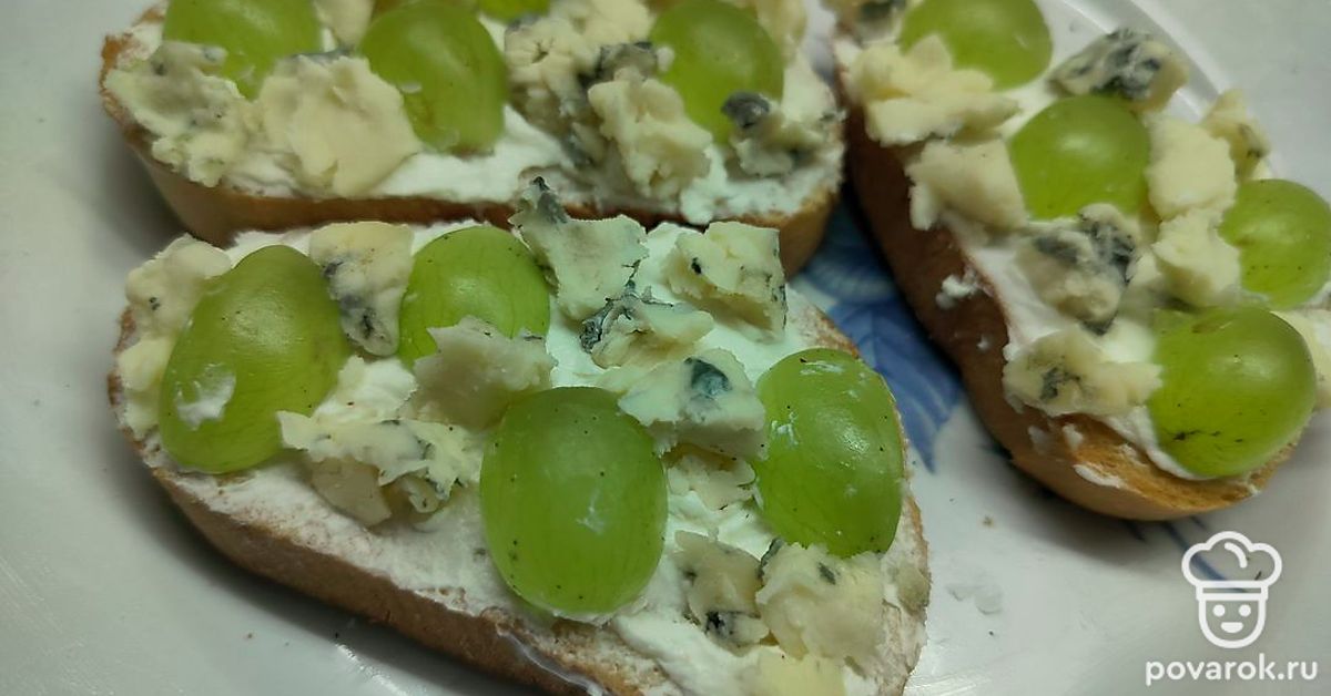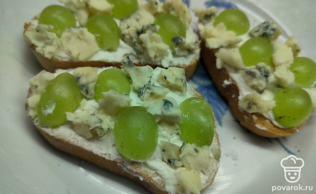 Сыр с плесенью раскрошите и посыпьте на бутерброд.