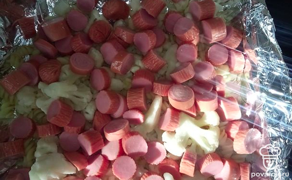 За 10 минут до готовности достаем запеканку из духовки и посыпает сыром, фольгой не накрываем, ставим обратно в духовку для того, чтобы сыр расплавился и подрумянился.
