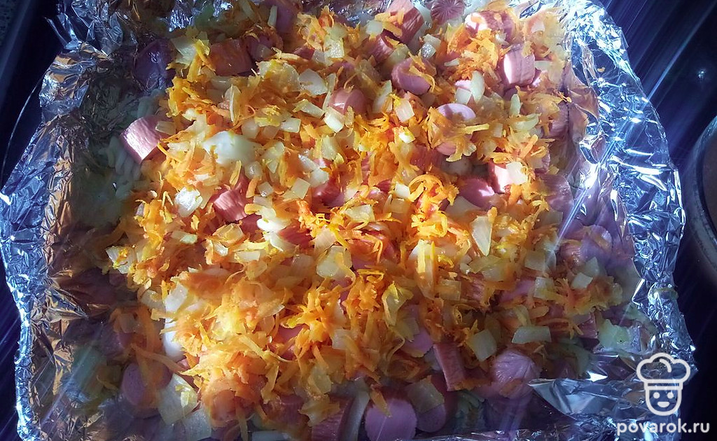 Накрывает фольгой и отправляем в духовку на полчаса при 200 градусах.
