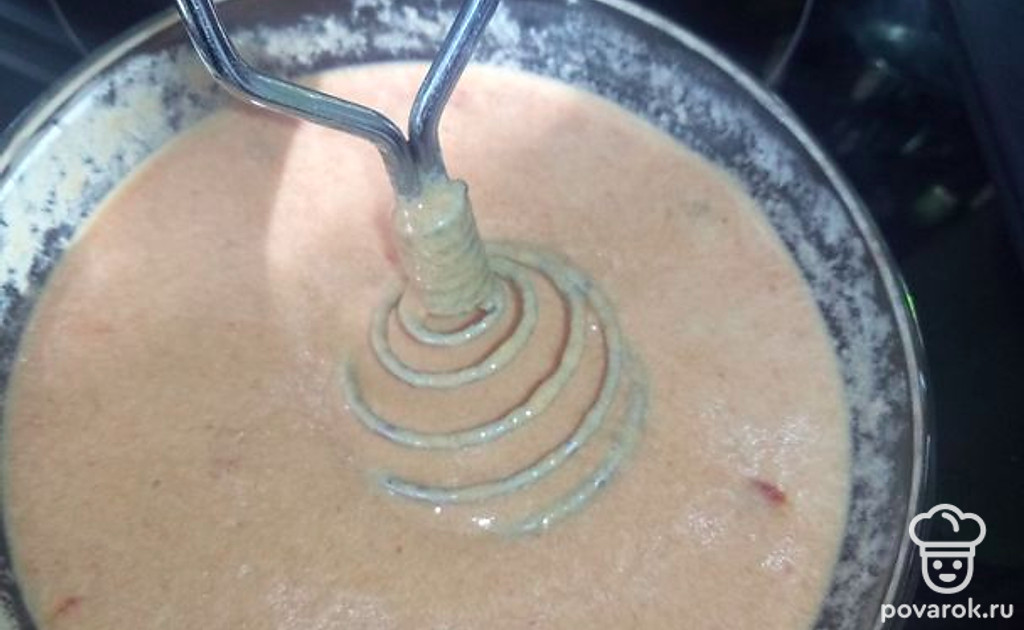 Солим, перчим и взбиваем венчиком до однородной массы.