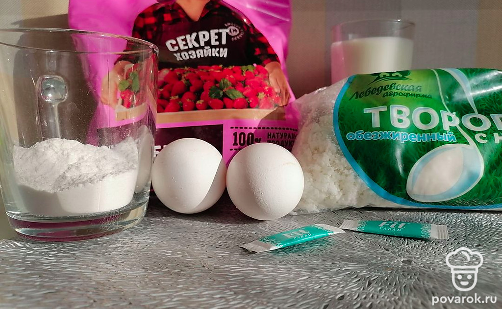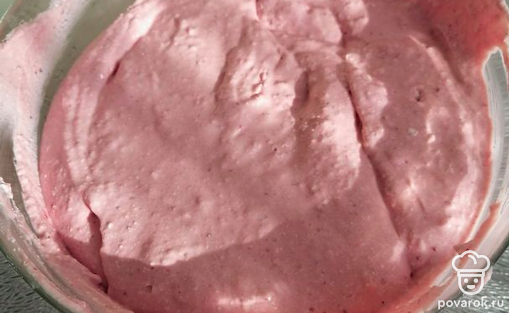 Смешать творог, яйца, сахарозаменитель (у меня фит парад стевия), клубнику, молоко и муку.