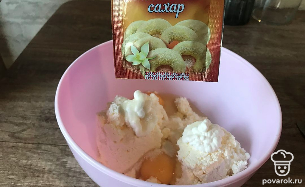 По желанию добавьте ванильный сахар или щепотку ванилина для придания особого аромата запеканке.