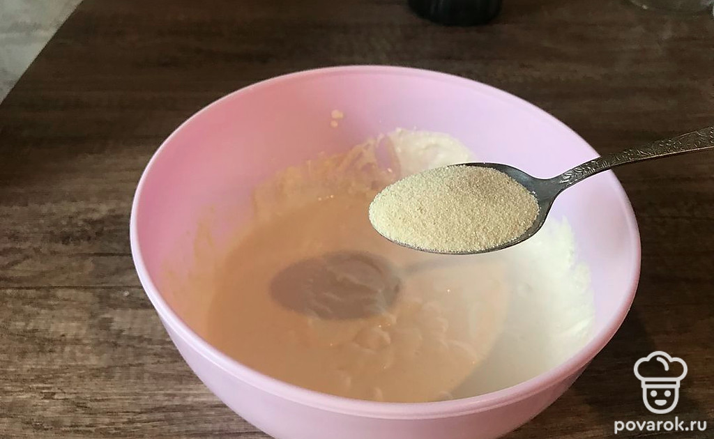 В однородную массу добавьте 1 столовую ложку манной крупы.