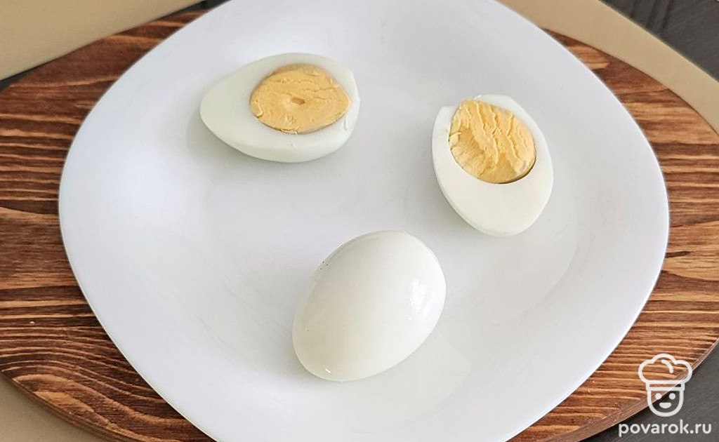 Разрежьте яйца пополам.