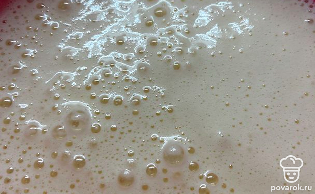Яйца смешиваем с сахаром и до пышной пены взбиваем.