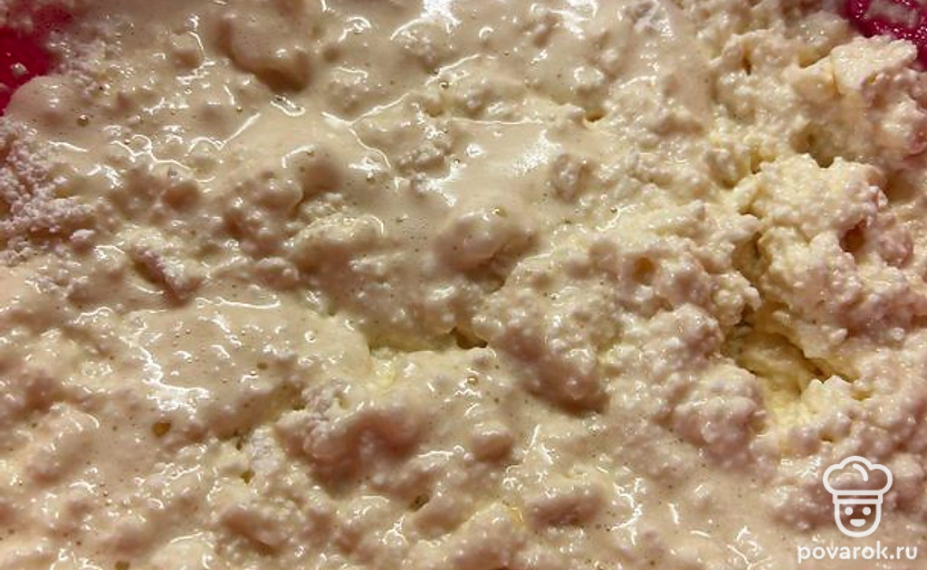 Добавляем к творожной массе муку, хорошо перемешиваем.