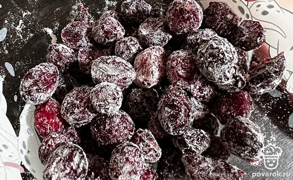 Вяленую клюкву чуть-чуть обваливаем в муке.