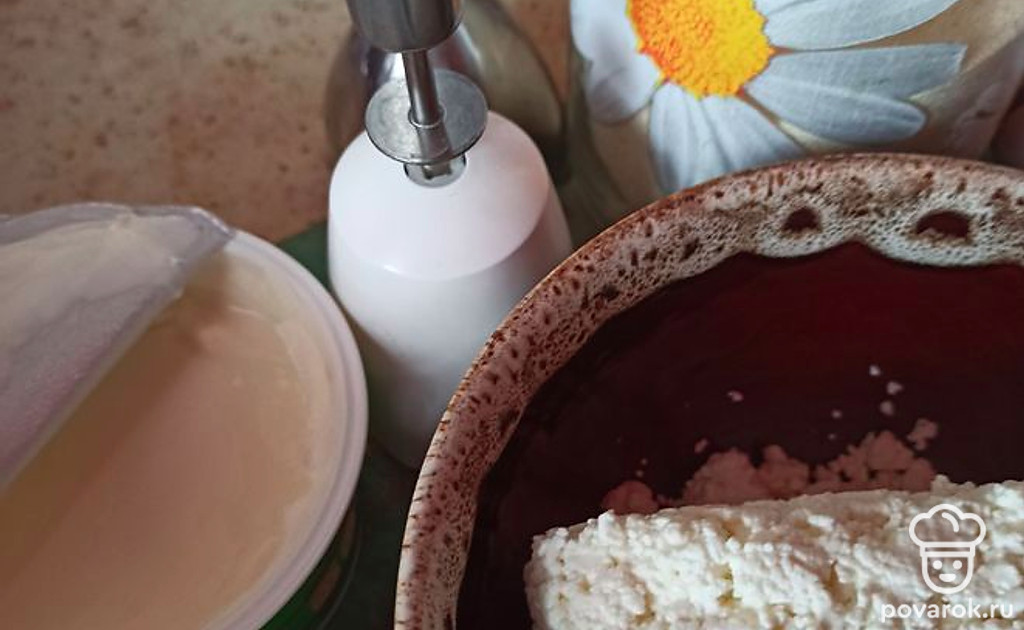 Белки взбить венчиком при помощи блендера и аккуратно ввести в творожную массу.