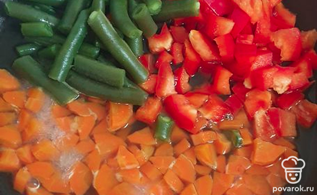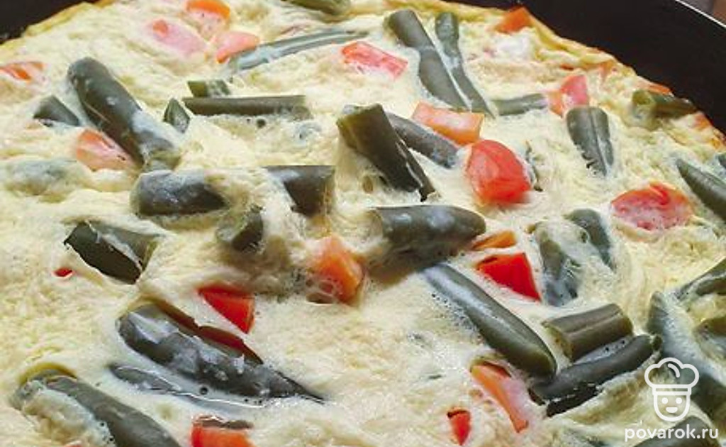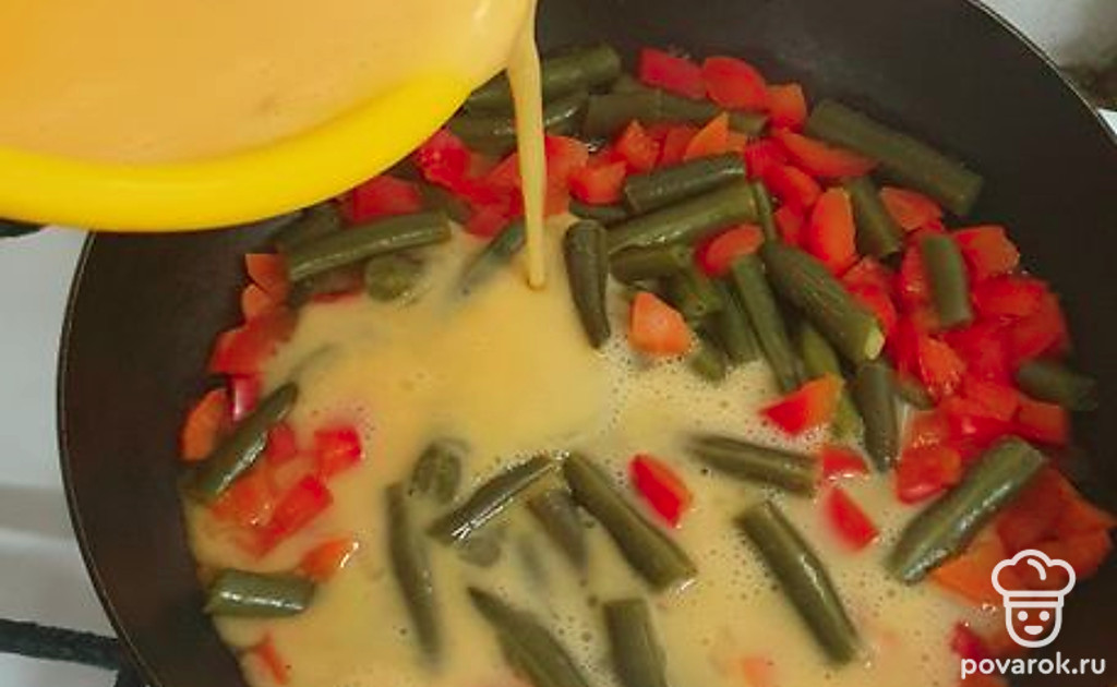 Залить овощи яичный смесью. Под крышкой готовить 10 минут.