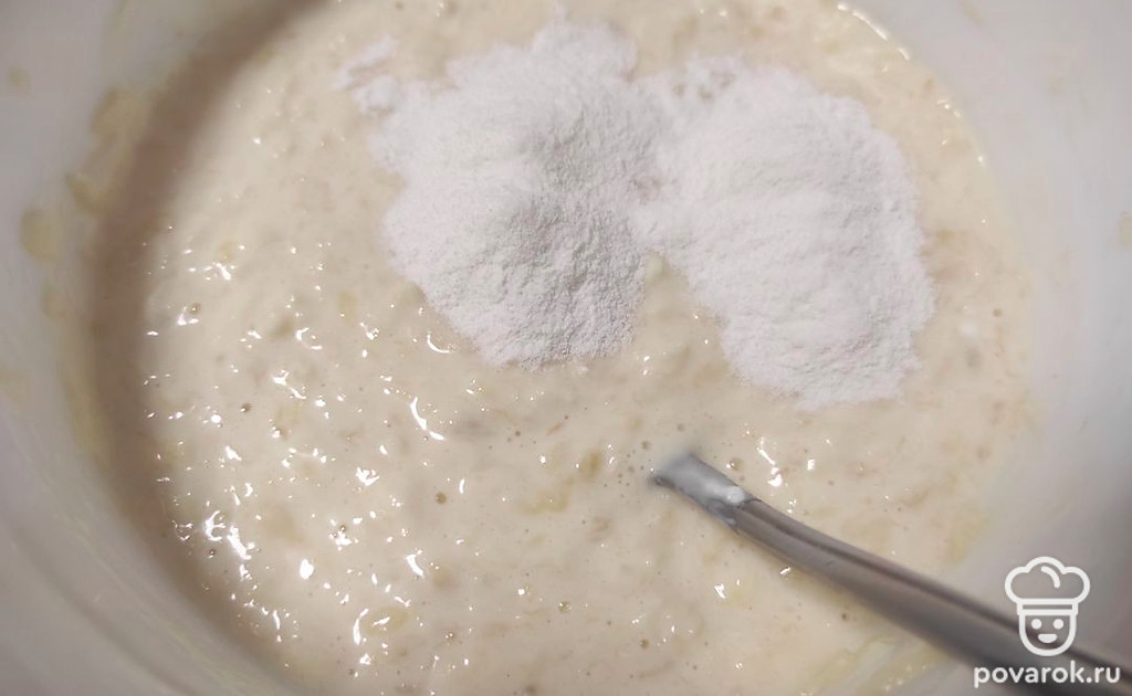 Добавить рисовую муку и перемешать до однородности.