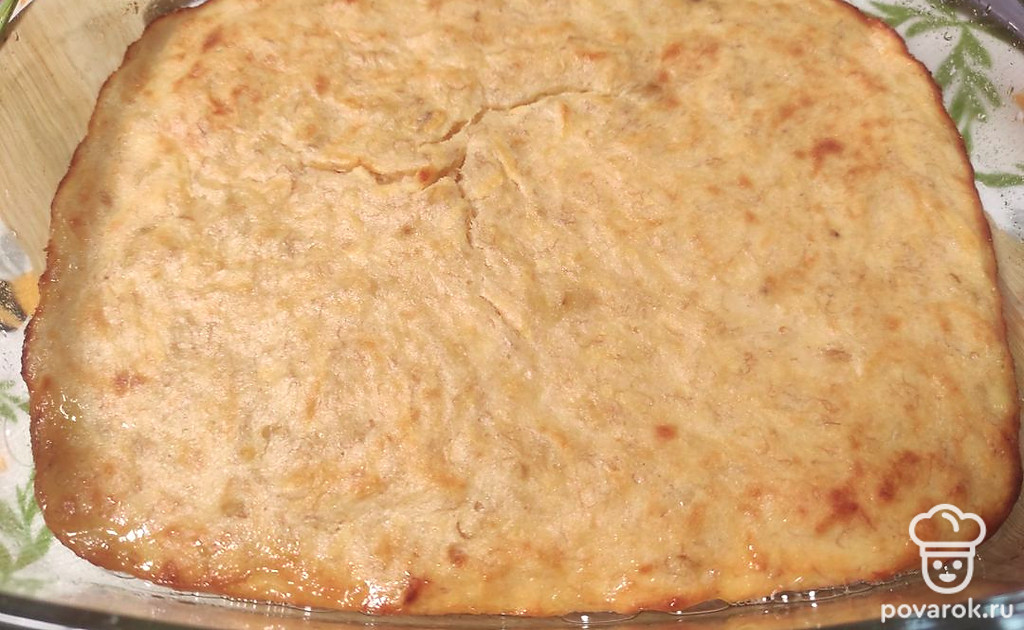 Готовую запеканку достать и дать немного остыть, разрезать на порционные кусочки.