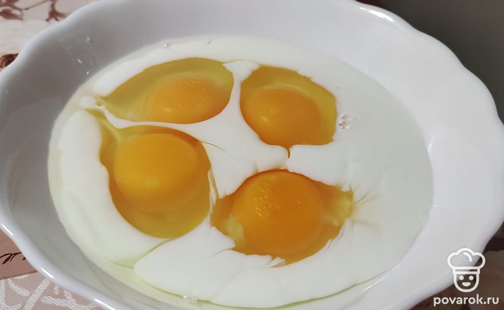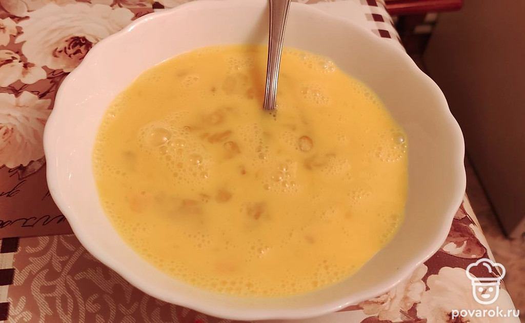 В миску разбиваем яйца, добавляем молоко, перец или специи по вкусу.