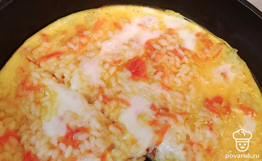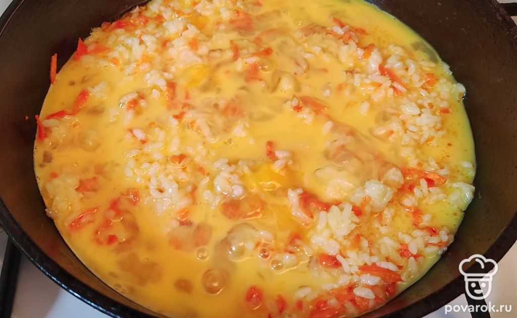 Заливаем нашей смесью, смесь должна покрыть всю начинку.
