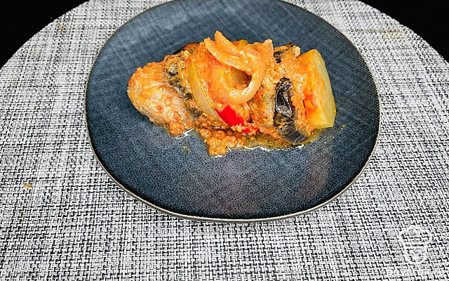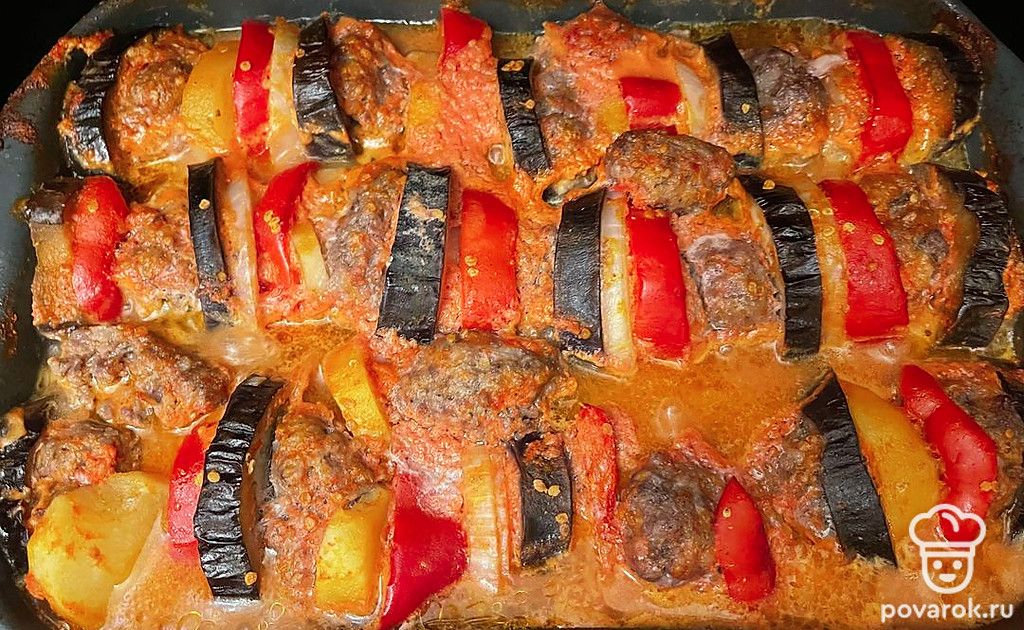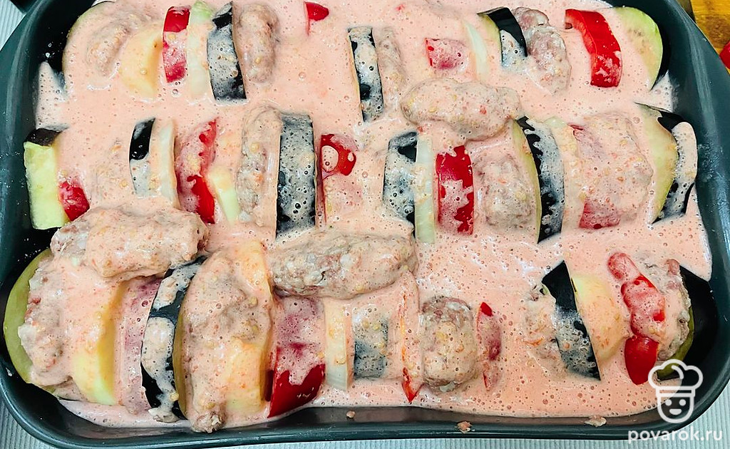 Этим соусом залить все и отправить запекаться в разогретую до 200 градусов духовку до готовности.