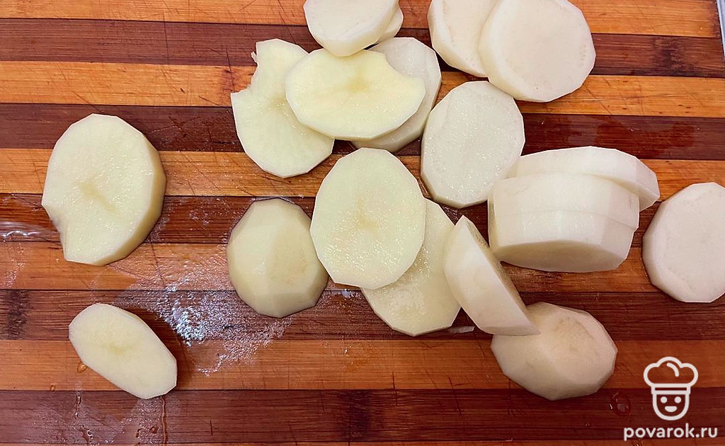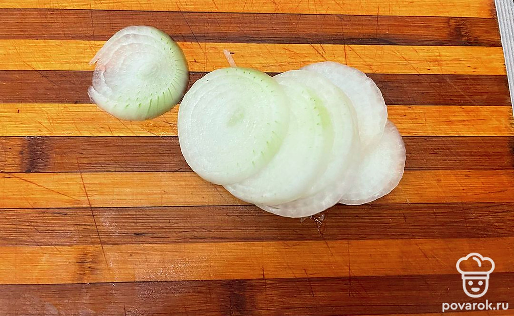 Баклажаны нарезать кружочками, засыпать солью и промыть, чтобы убрать лишнюю горечь.