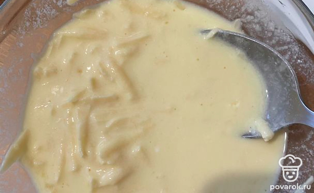 В отдельной миске смешать яйцо, сметану, тертый сыр.
