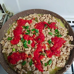 Посыпаем зелёным луком и выкладываем аджику. Закрываем крышкой и готовим, ещё 20 минут на медленном огне.