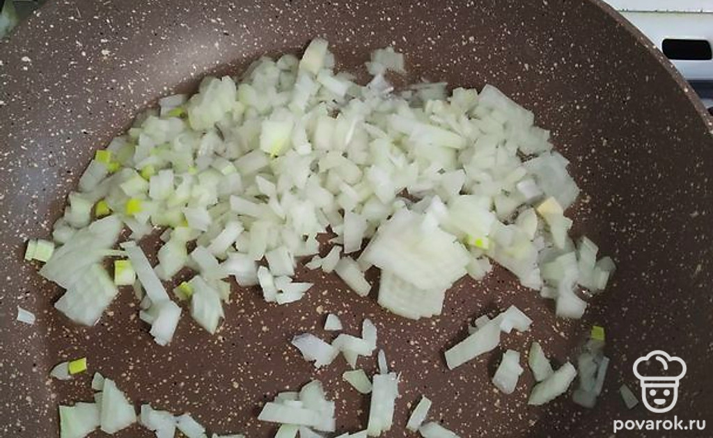 Лук почистить, мелко нарезать и обжарить на растительном масле.