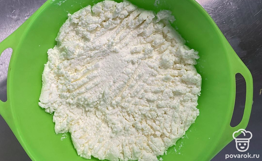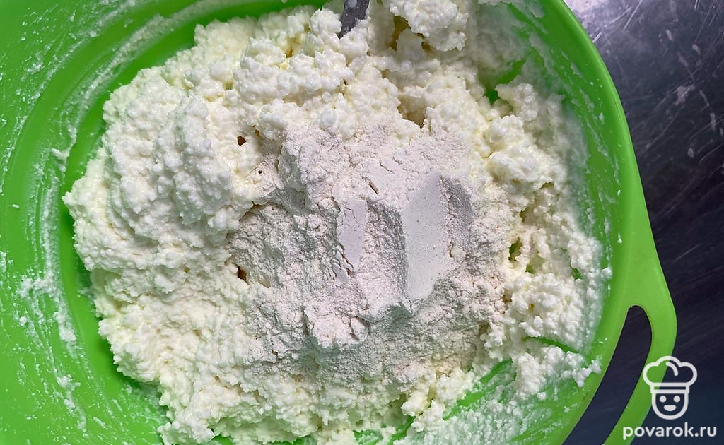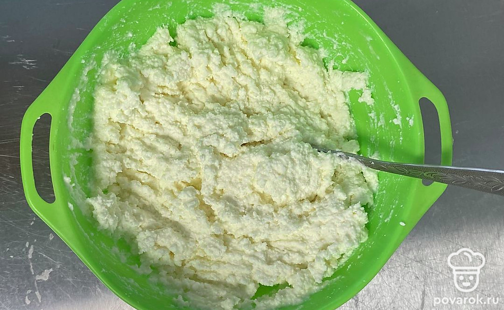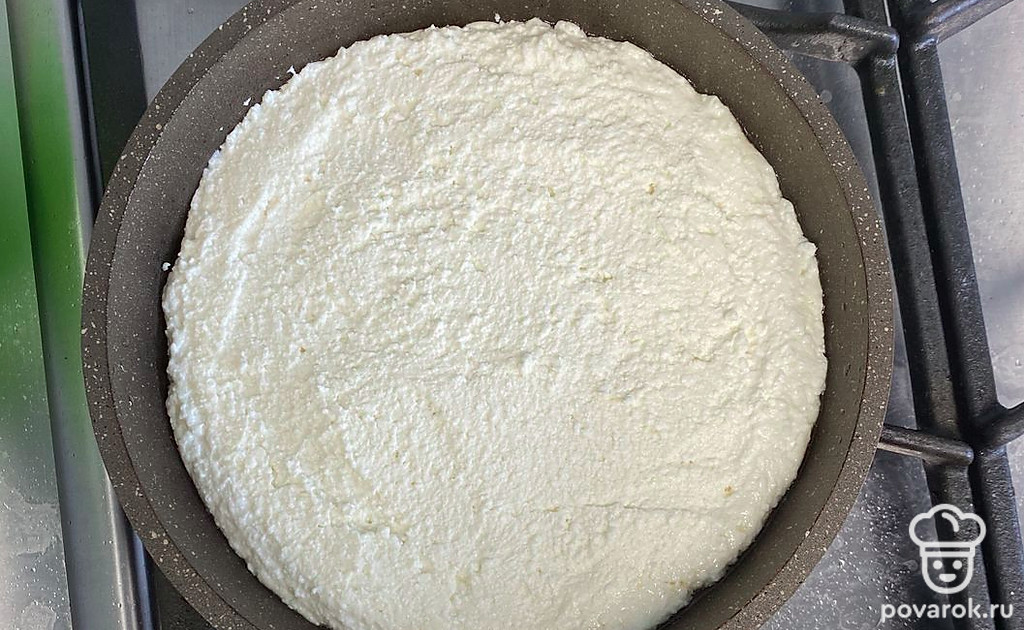 На смазанную подсолнечным маслом разогретую сковороду выложить творожную массу равномерным слоем.