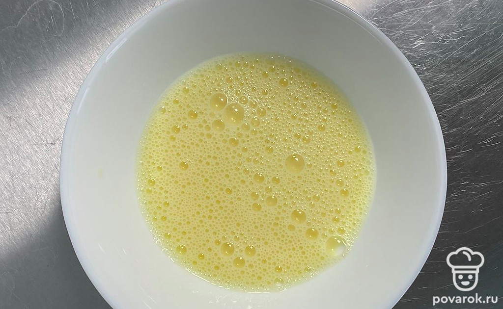 Яйцо взбить вместе с сахарозаменителем до образования пены.