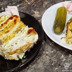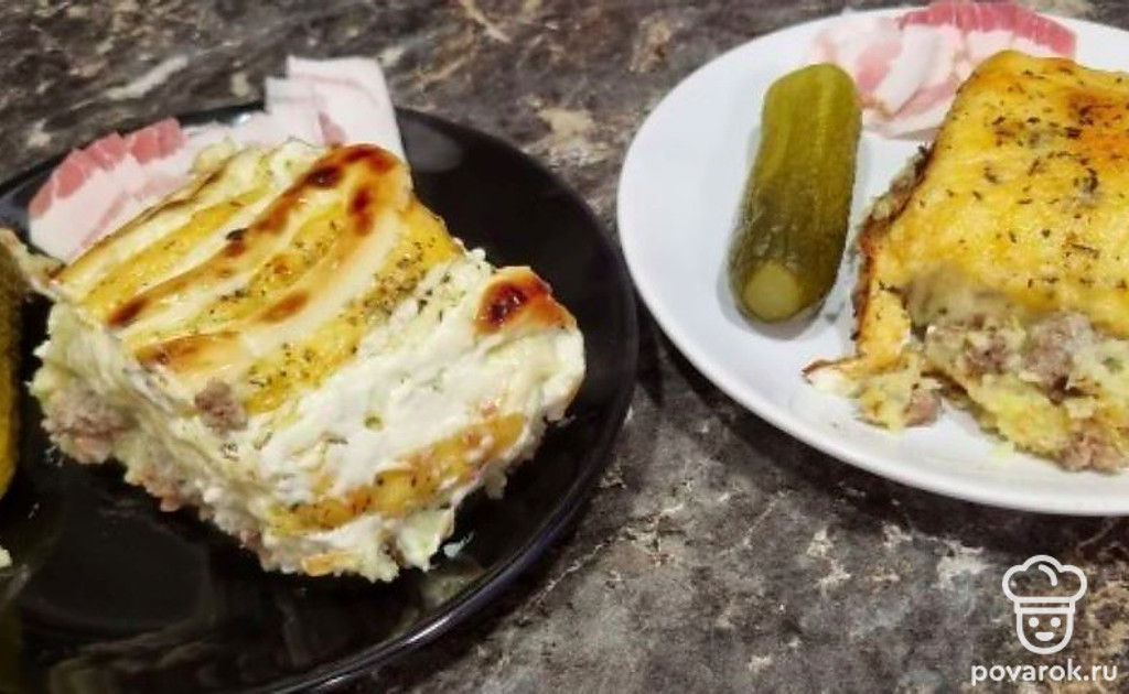 P.S. Как вариант в 10 шаге сыр можно смешать с майонезом и также промазать последним слоем.
