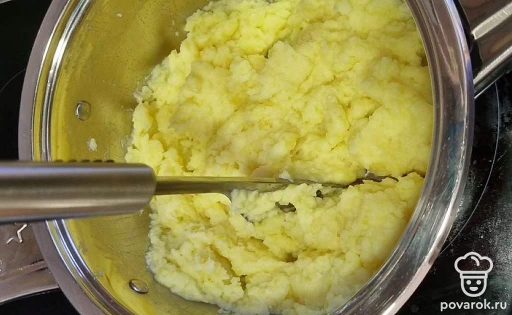 После того, как картошка сварилась, делаем пюре с добавлением сливок 10%.