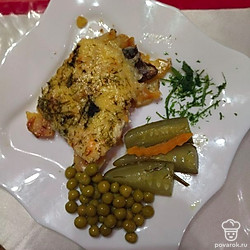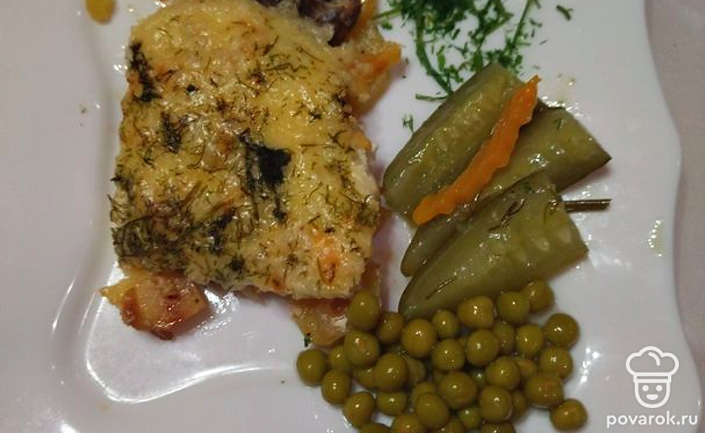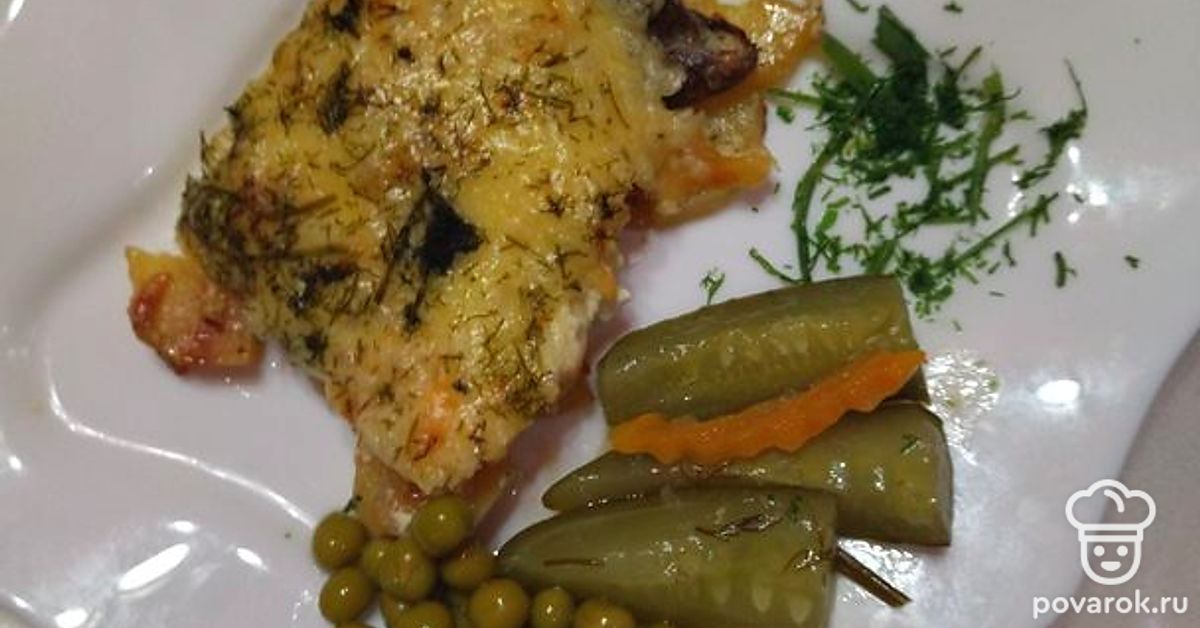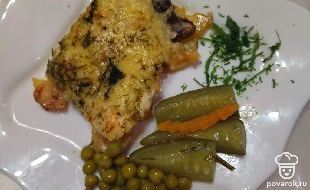Запеканка с грибами, картофелем, сыром гауда и свежей зеленью