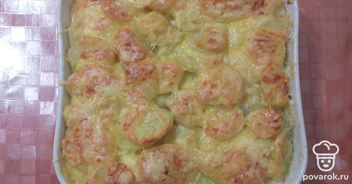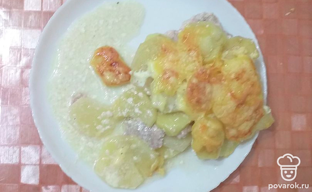 Нежная картофельная запеканка с фаршем в сметанном соусе под сыром