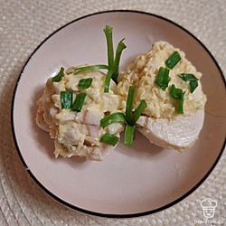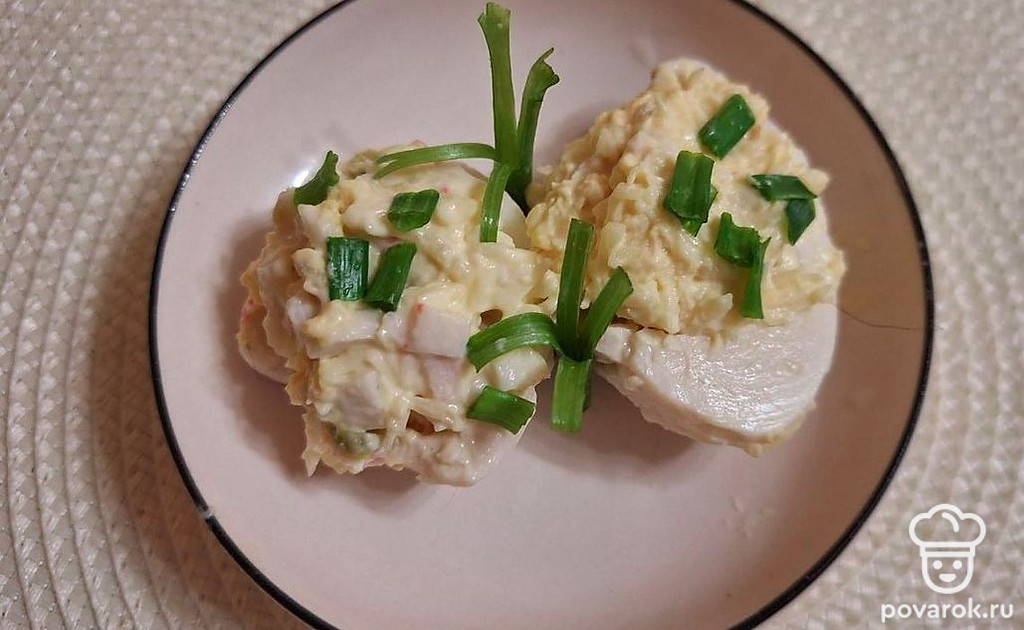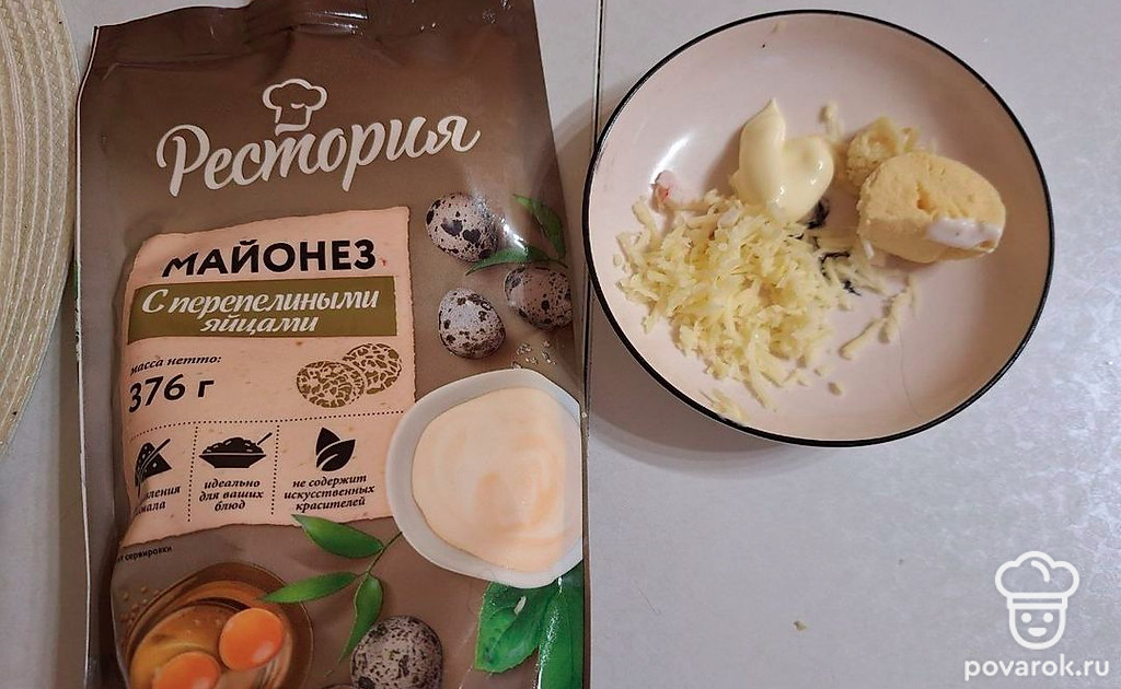 Яйцо очистите. Извлеките желток, добавьте к нему майонез и перемешайте.