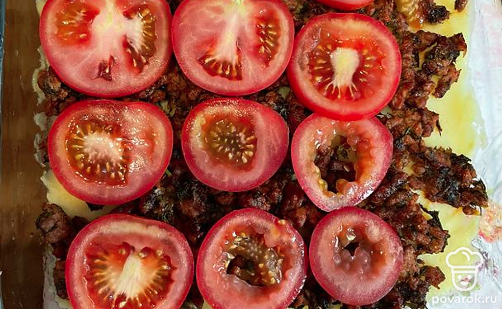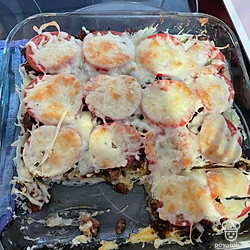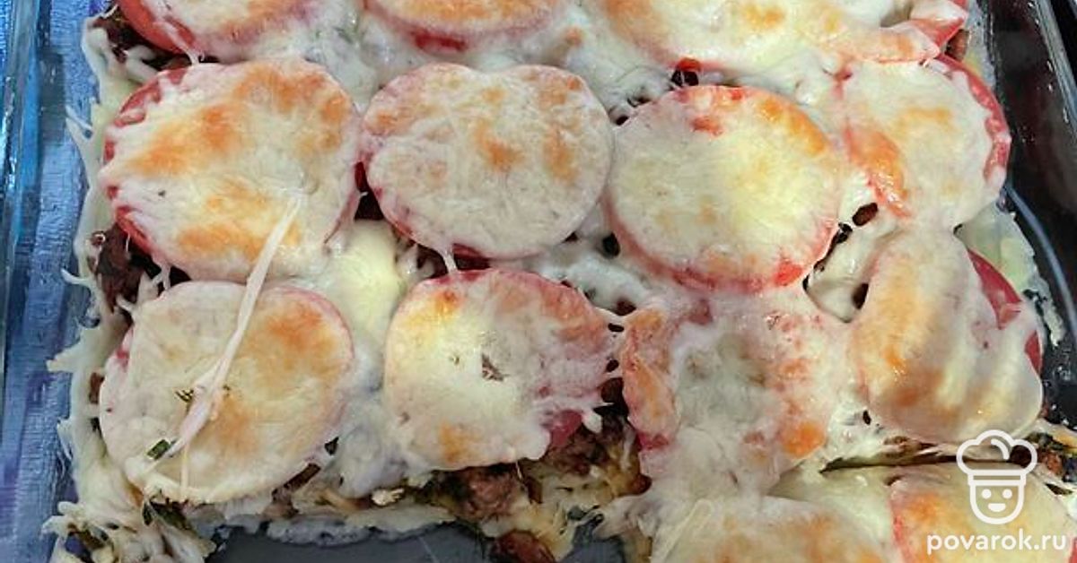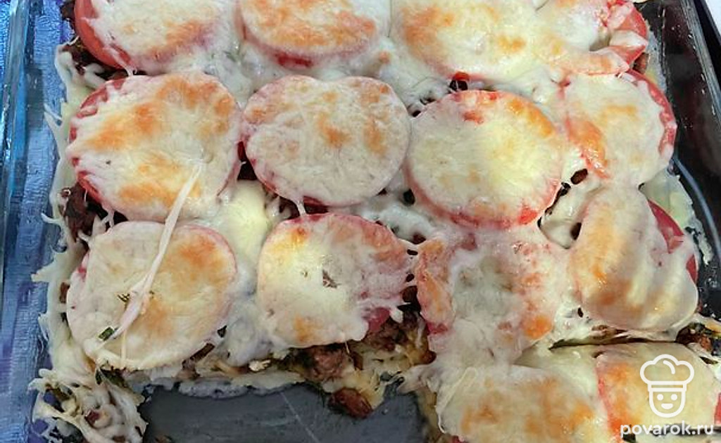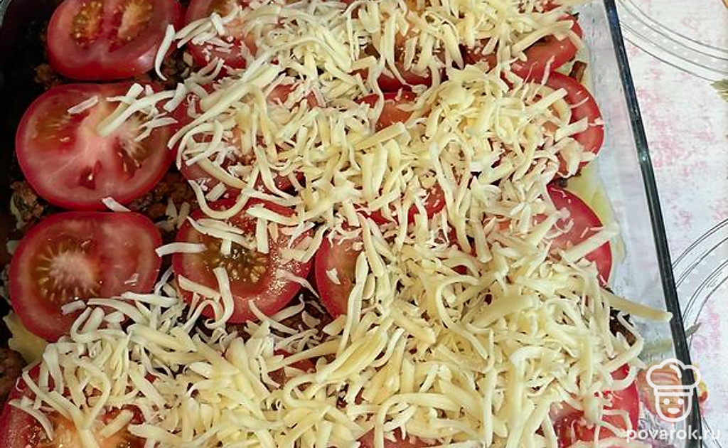 Затем засыпаем все сыром и выпекаем при 180 градусах 30 минут.