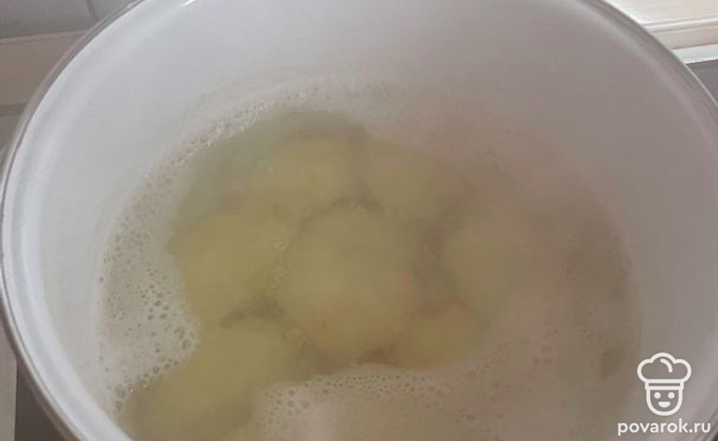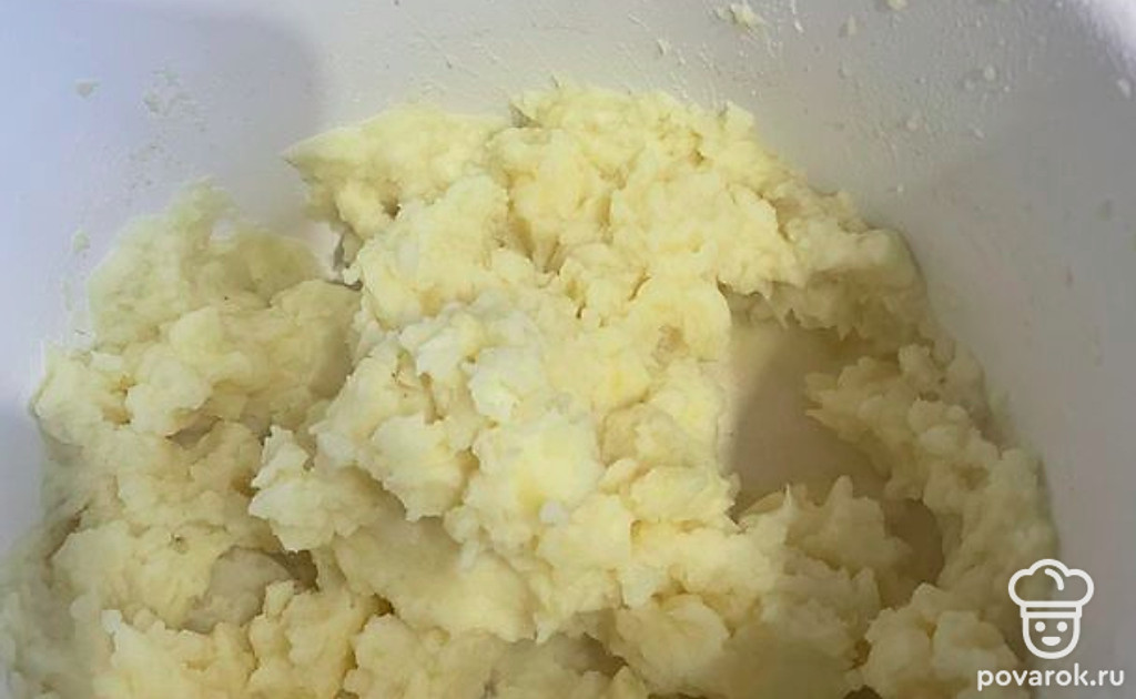 Далее толчем картошку, добавляем молоко и сливочное масло. Делаем из нее пюре.