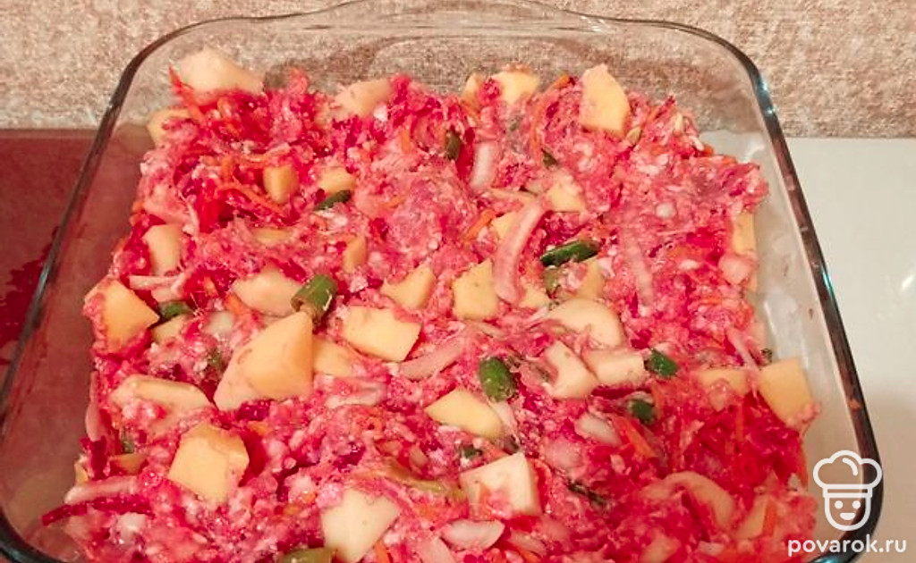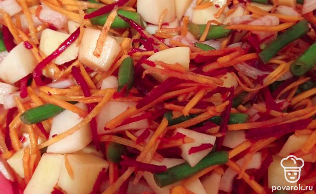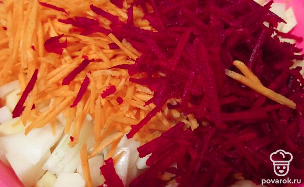 Лук, морковь, свеклу измельчить или натереть на терке.