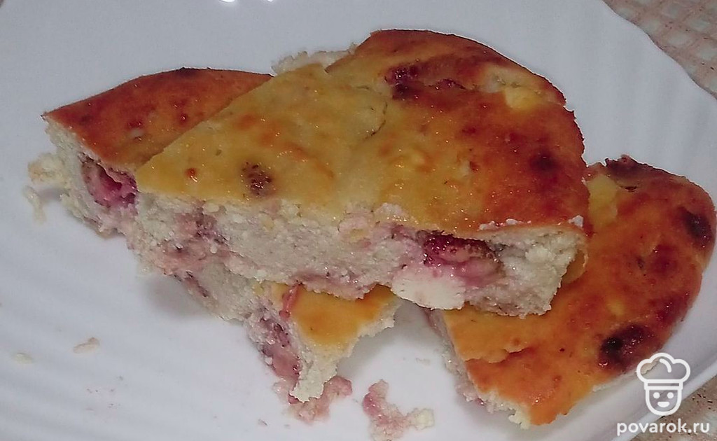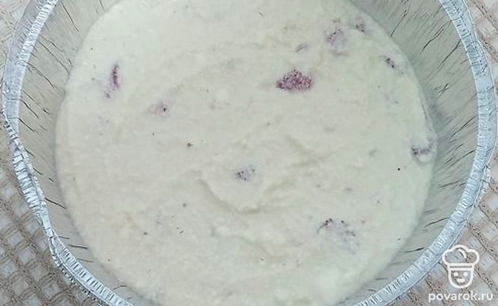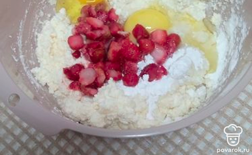 Добавить яйца, ягоды и крахмал. Перемешать и оставить на 15 минут.