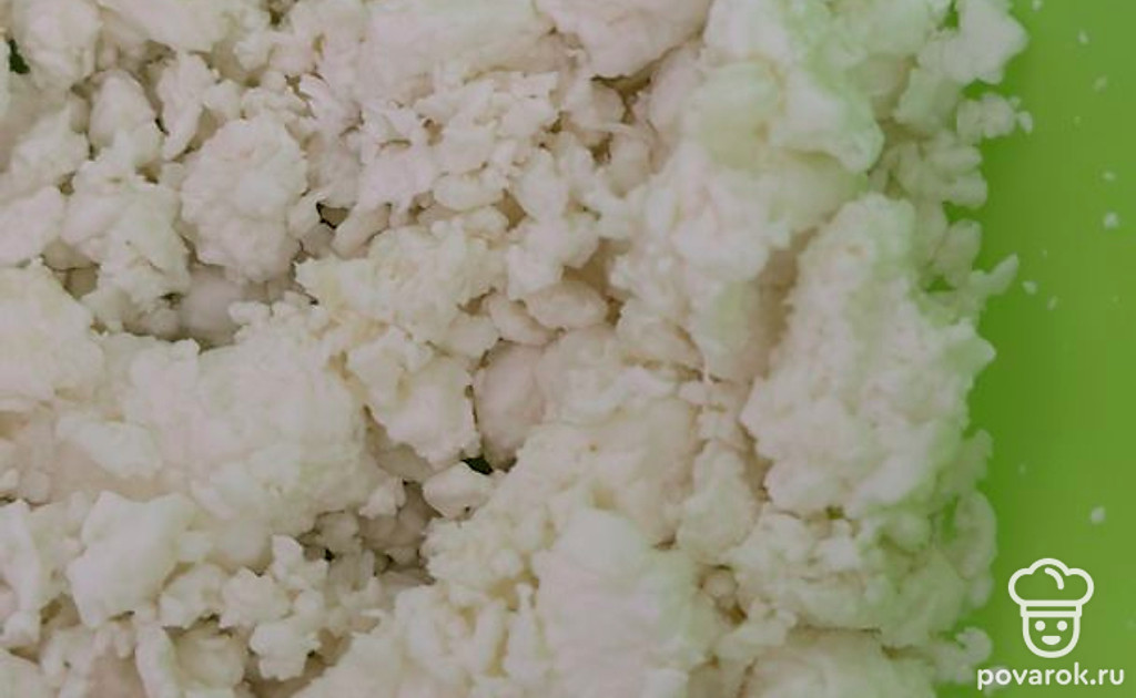Творог разминаем вилкой.