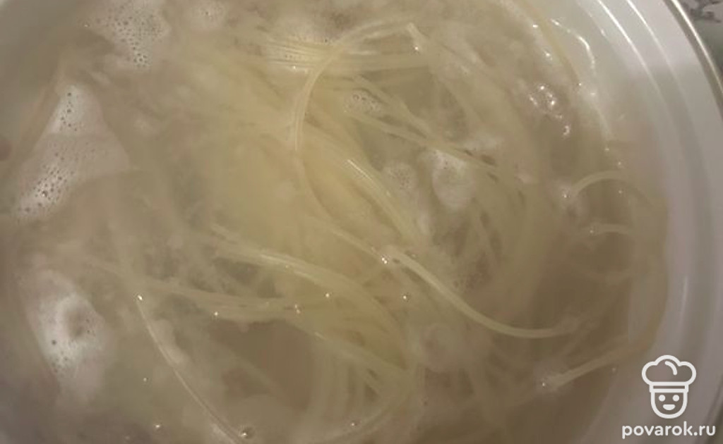 Отвариваем спагетти до состояния аль денте, не развариваем.