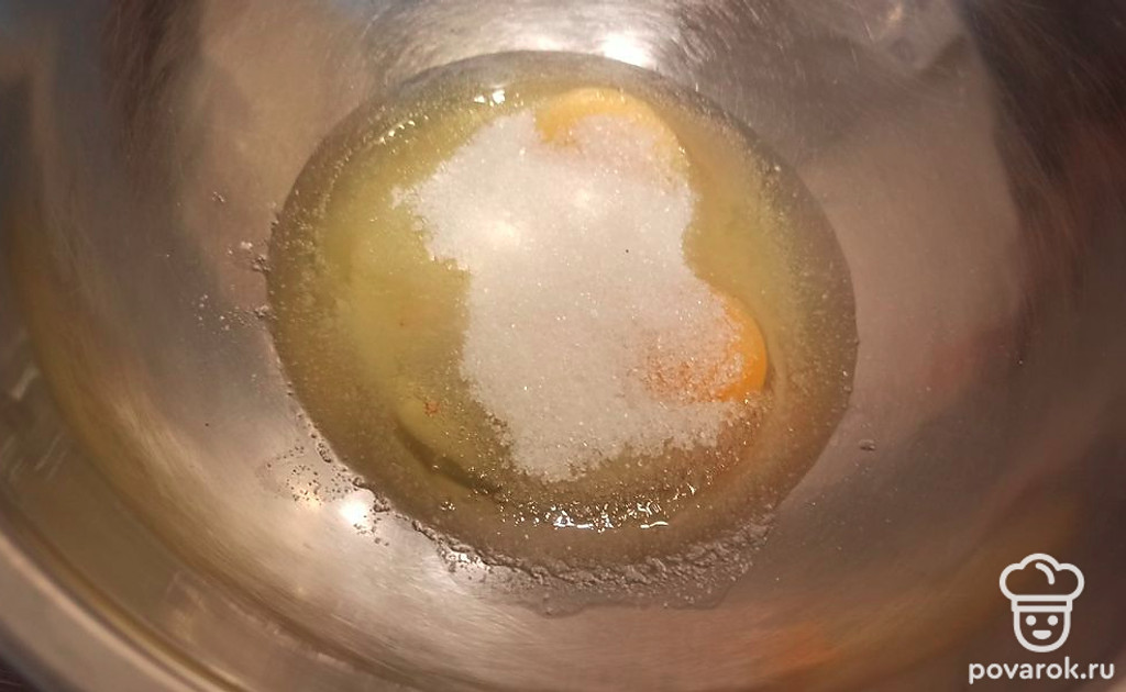 Яйца смешиваем с сахаром.