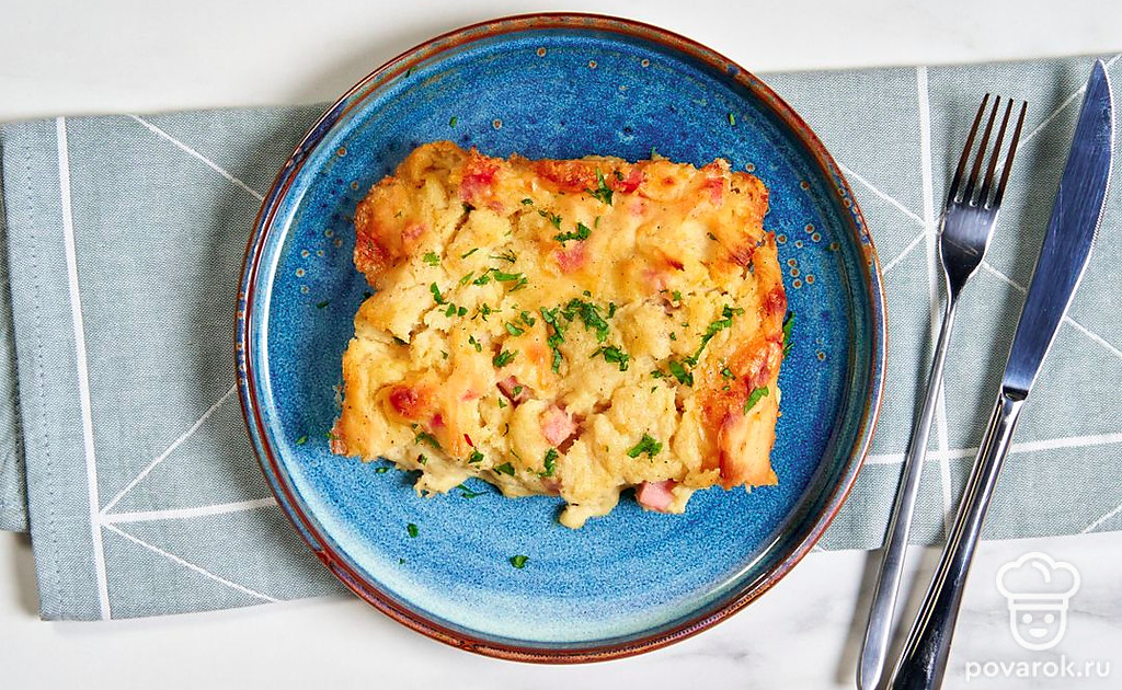 Существует большое количество рецептов приготовления картофельного пирога. Этот вариант — итальянский. Его тесто готовится исключительно из картофеля и начинки из сыра и ветчины — никакой муки добавлять не нужно. Замешивать и дожидаться, пока тесто подойдет, тоже не надо. Поэтому можно сказать, что это блюдо больше похоже на запеканку. Пирог получается вкусный, сытный и очень ароматный. А главное, снаружи он покрывается хрустящей корочкой, оставаясь нежным внутри.