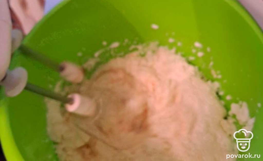 Хорошо взбить миксером до однородной массы, разбив все комочки творога.