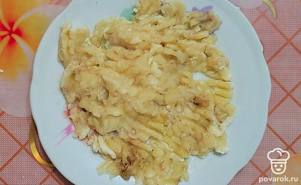 Половинку банана разомните вилкой.