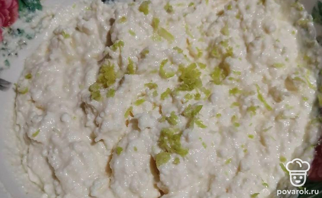 В творожное тесто добавьте цедру лимона, хорошо перемешайте.