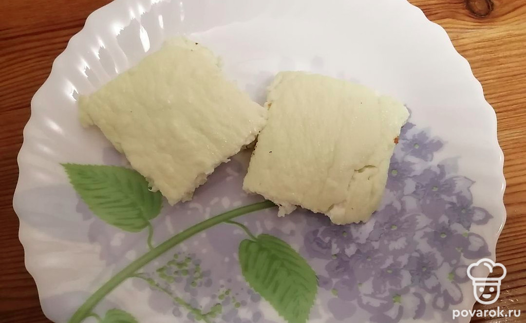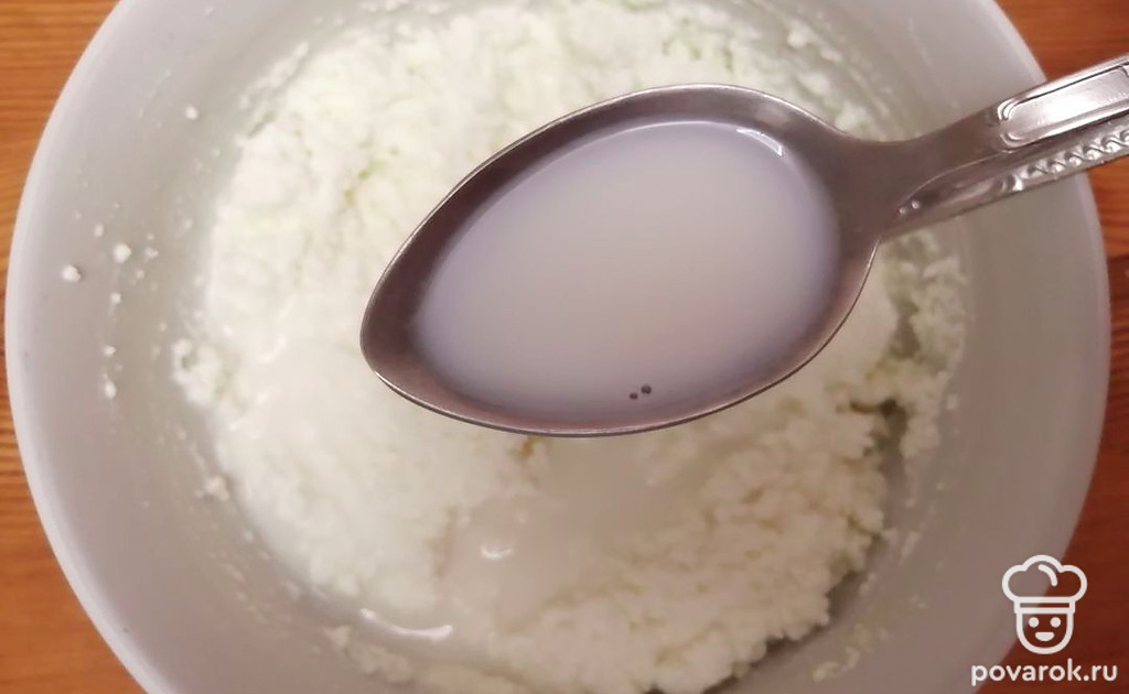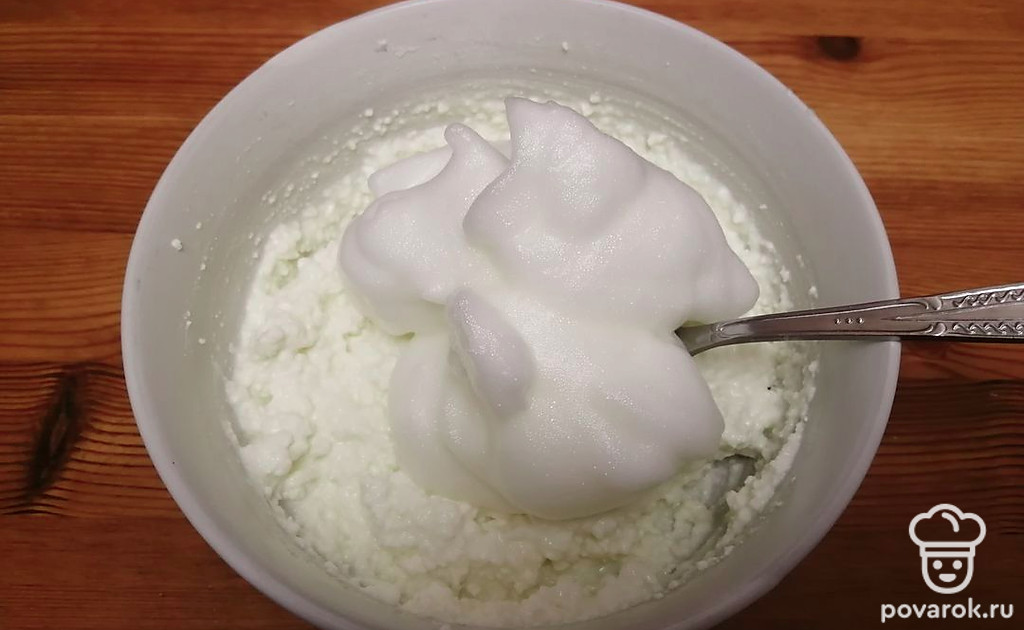 Добавьте белок к творогу. Все хорошо перемешайте.