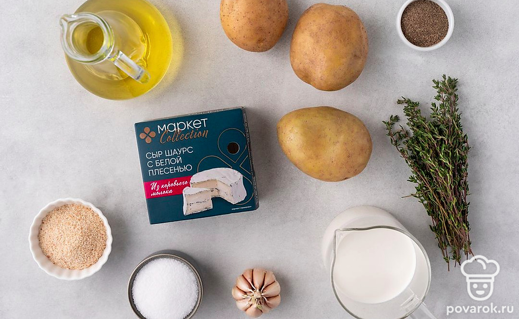 Очень тонко нарезанный картофель в традиционной французской запеканке гратен быстро пропекается и полностью пропитывается сливками и пряностями. А мягкий сыр с плесенью добавляет блюду свой пикантно-сливочный вкус. Возьмите рецепт за основу и добавьте на свой вкус кусочки бекона, яйца, лук или зелень. Подберите для запекания красивую керамическую форму, в которой гратен можно будет сразу подать на стол.