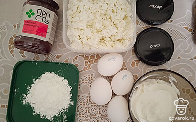 Желтки с творогом, сметаной, сахаром, крахмалом блендером измельчите в пюре.