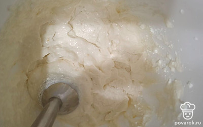 Влейте взбитые белки в получившуюся творожную смесь.
