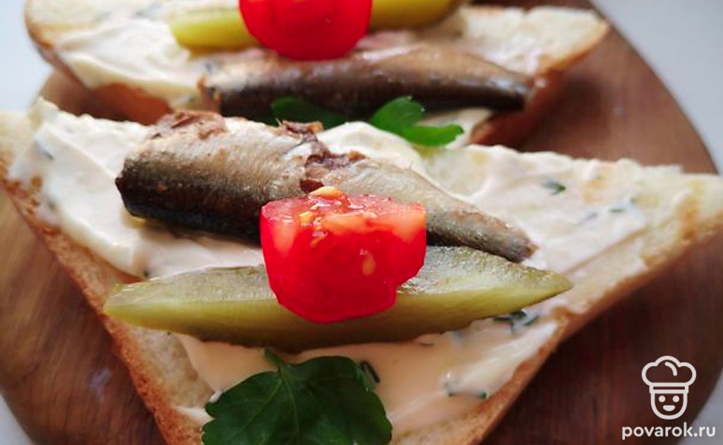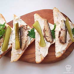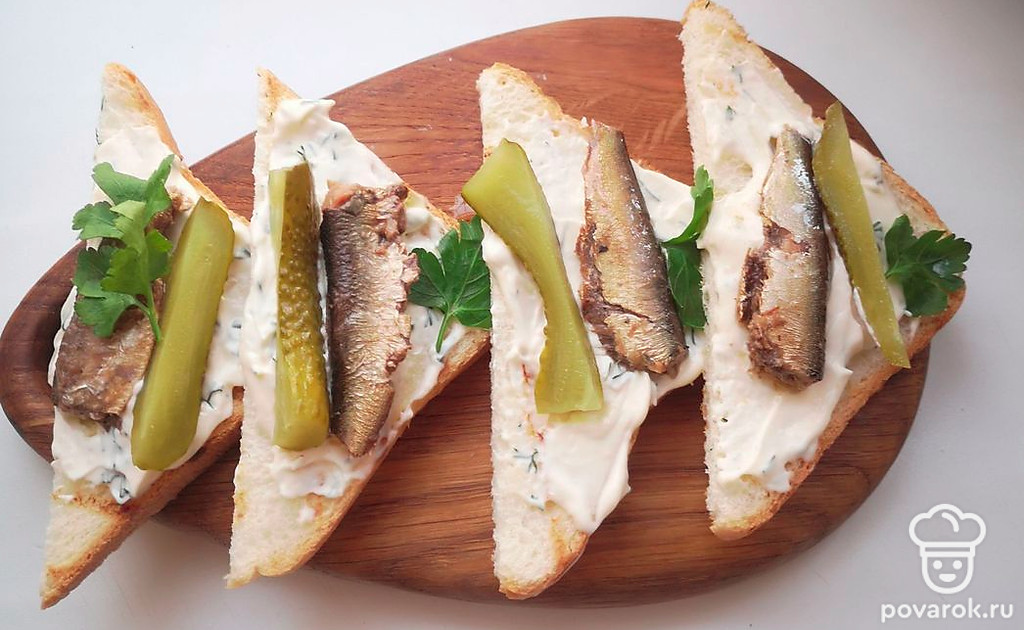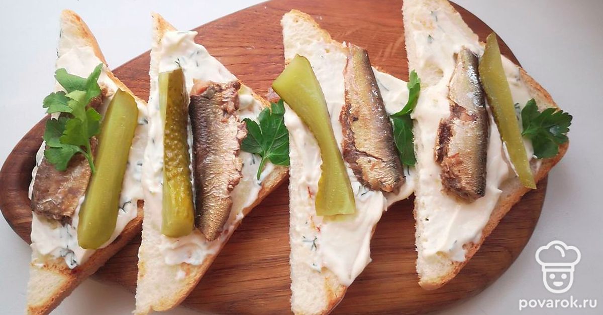 Тост со шпротами и маринованными огурцами