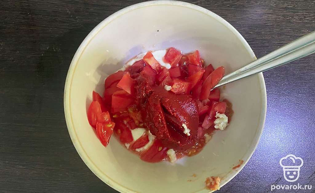 Приготовьте соус. В глубокую тарелку выложите сметану.
