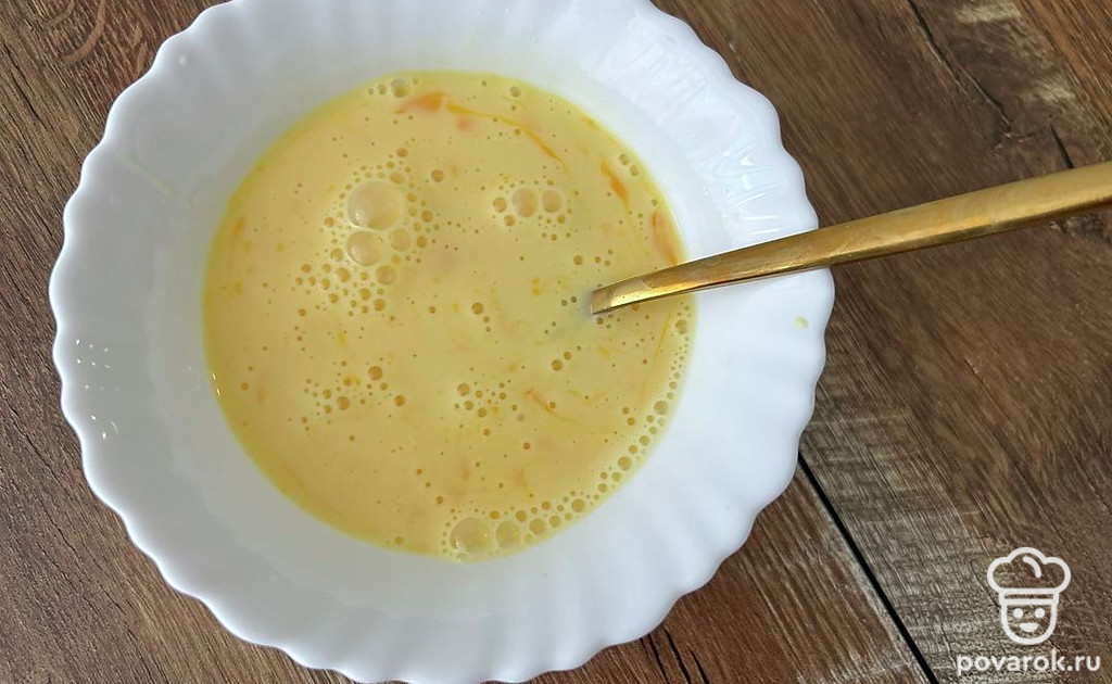 Смешайте 1 яйцо и 70 миллилитров молока. Посолите по вкусу.