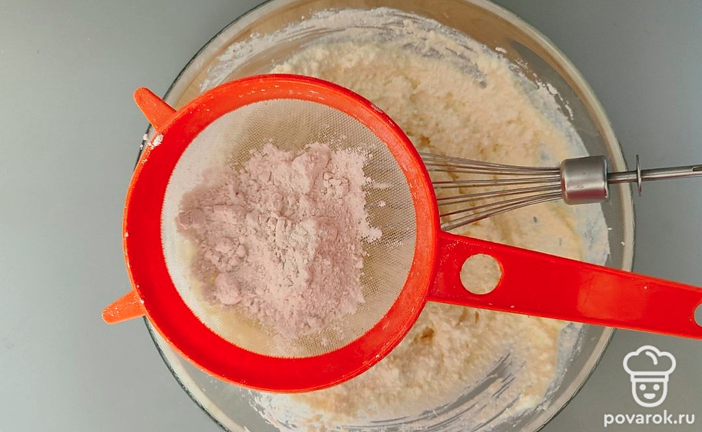 Всыпьте муку через сито и опять хорошо перемешайте.