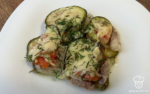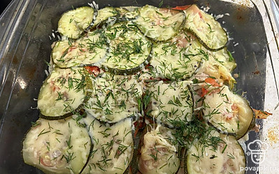 Запеченные кабачки в майонезно-чесночном соусе с сыром